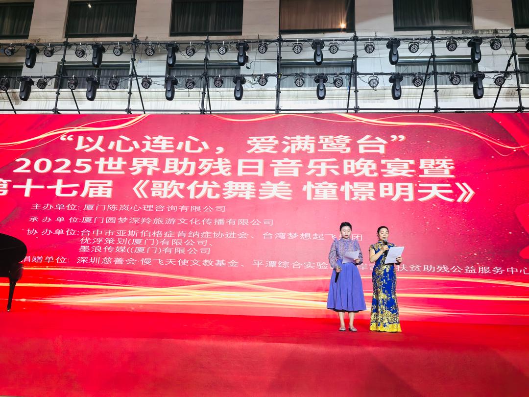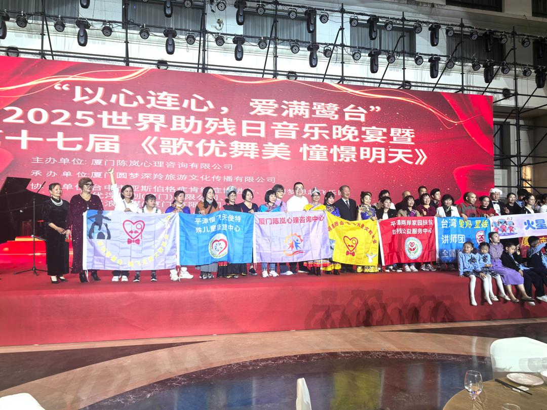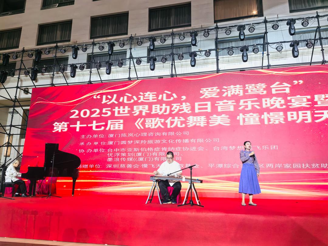台湾共工新闻社讯(记者熊馨缘)2025年12月3日晚,翔鹭国际大酒店灯火璀璨、暖意涌动。“以心连心·爱满鹭台——2025孤独症青年音乐交流会”温情启幕,为第34个国际残疾人日增添一抹动人的亮色。活动由厦门陈岚心理咨询有限公司主办,厦门圆梦深羚旅游文化传播有限公司承办,台中市亚斯伯格症肯纳协进会、台湾梦想起飞乐团等机构协办,国际新闻视角报社、台湾共工新闻社等十余家媒体共同支持,并获得深圳慈善会•慢飞天使文教和平潭综合实验区扶贫助残公益服务中心的大力协助。