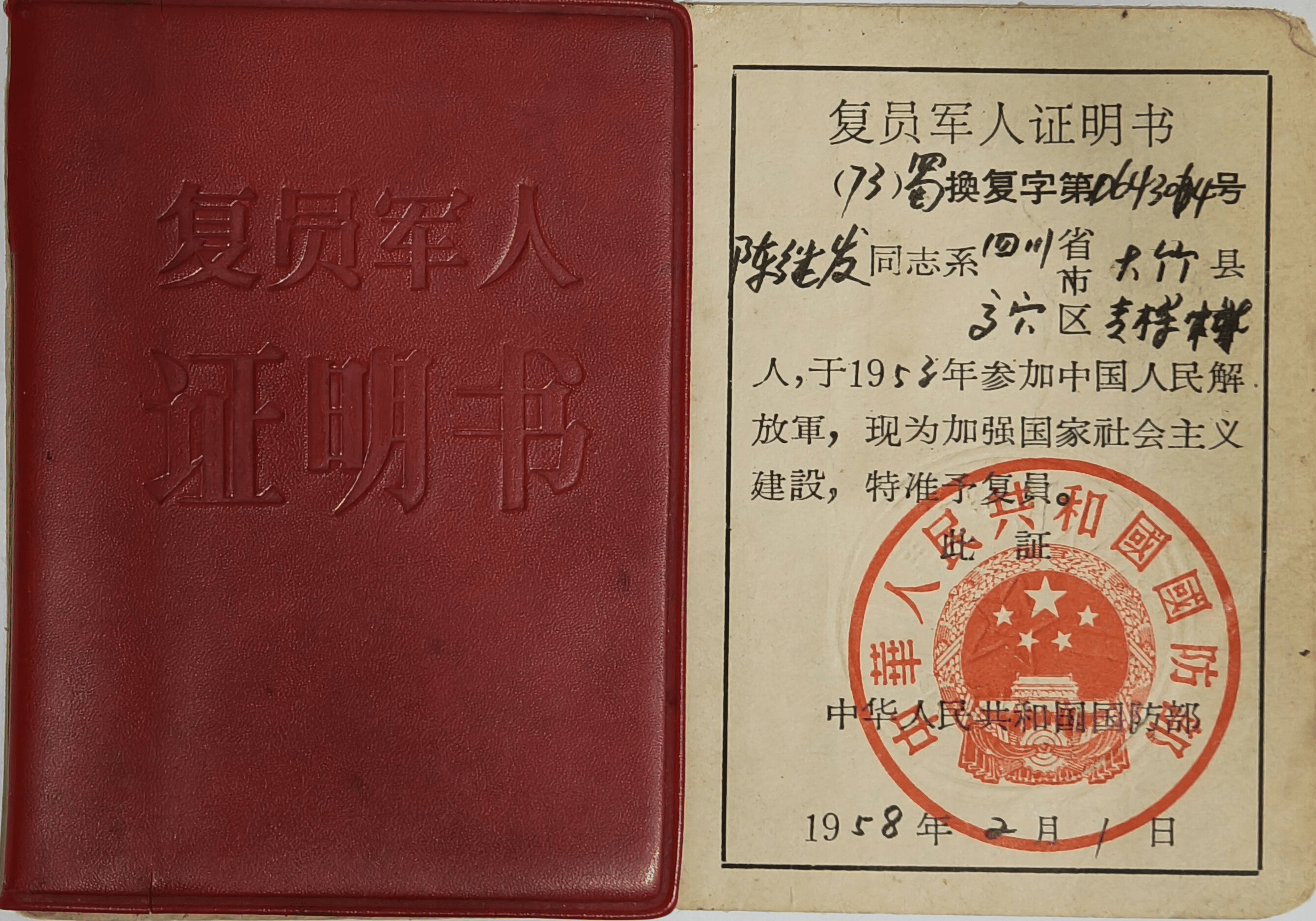 老兵陈继发的复员军人证明书内页,见证抗美援朝服役历程