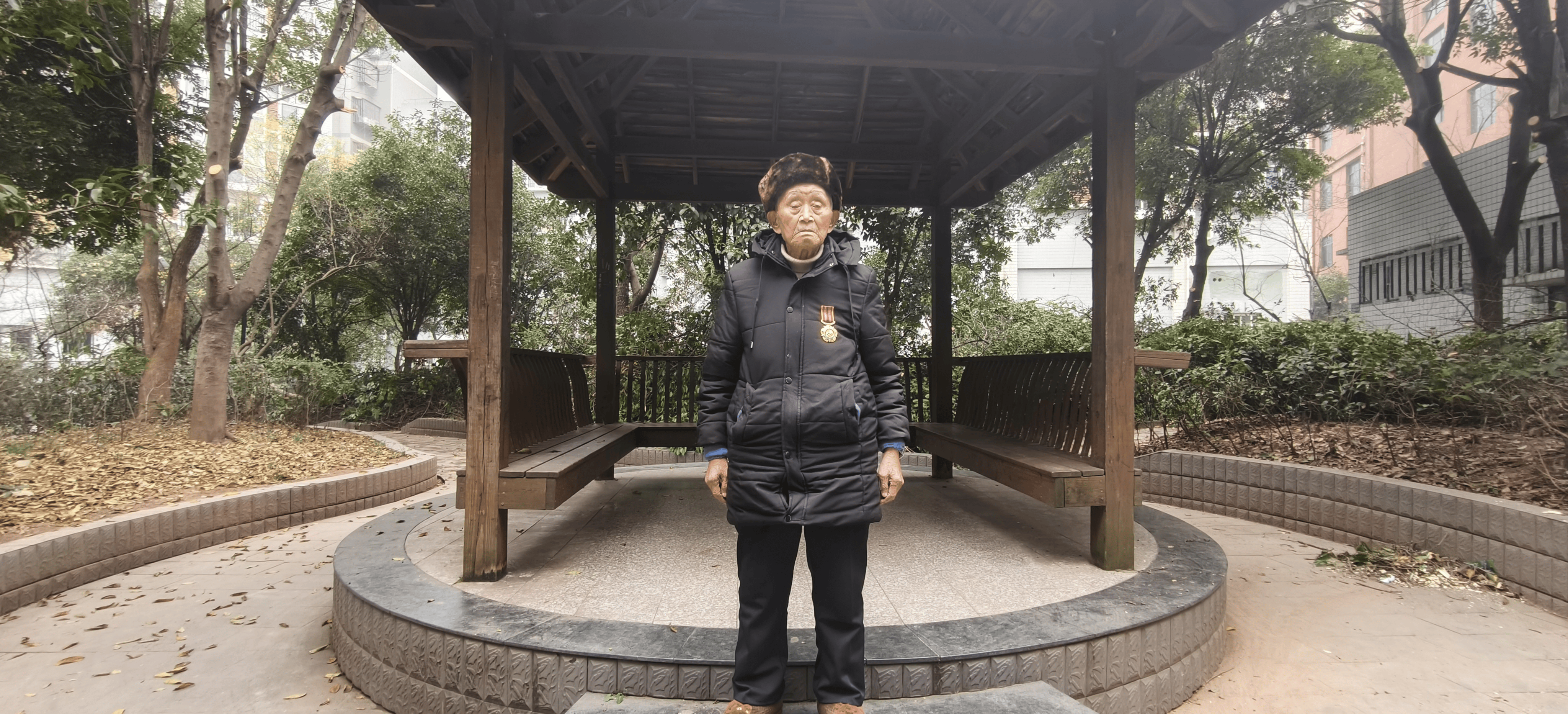 百岁抗美援朝老兵陈继发佩戴70周年纪念章,尽显老兵风骨