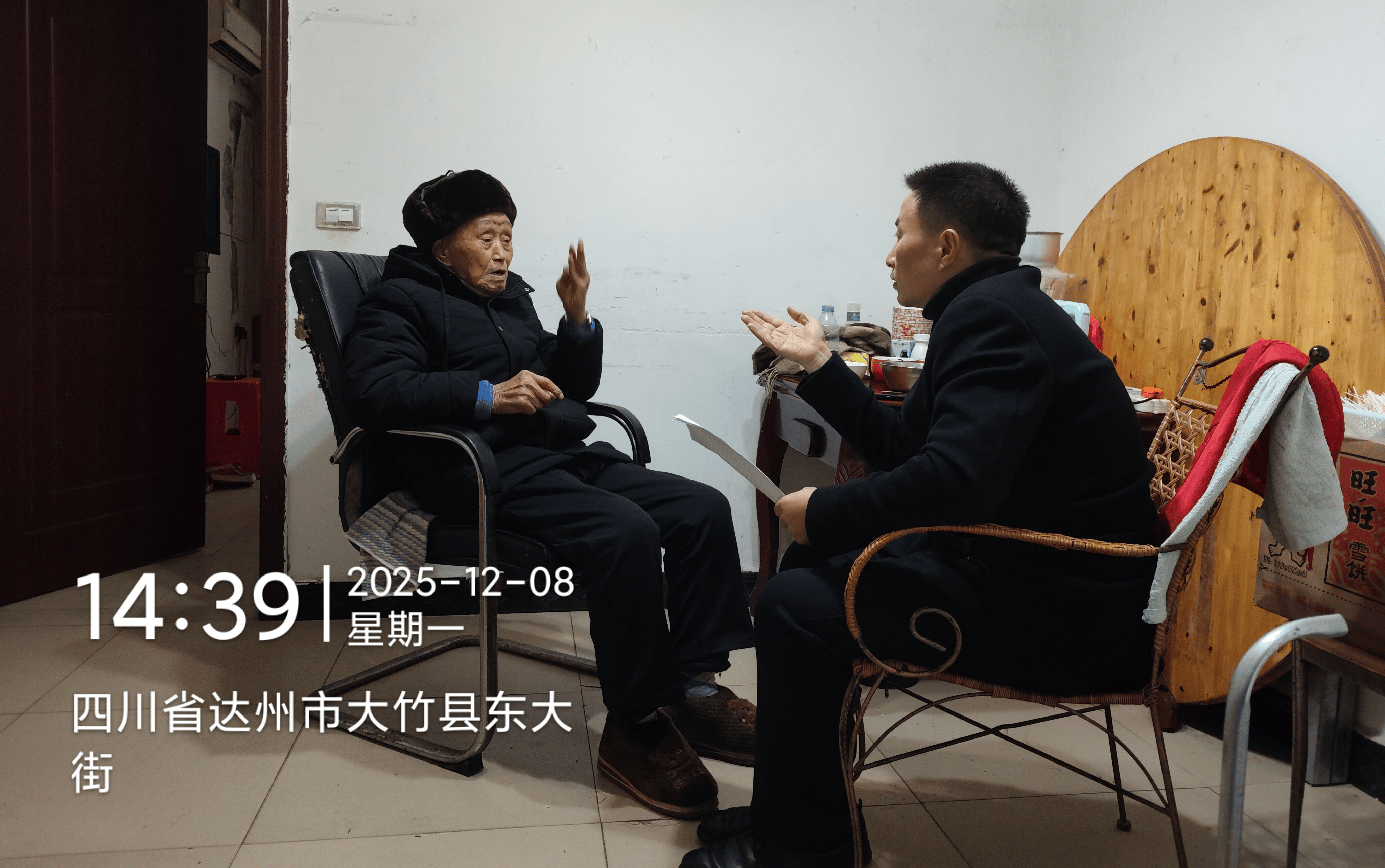采访者与老兵陈继发亲切交谈,聆听红色战斗故事