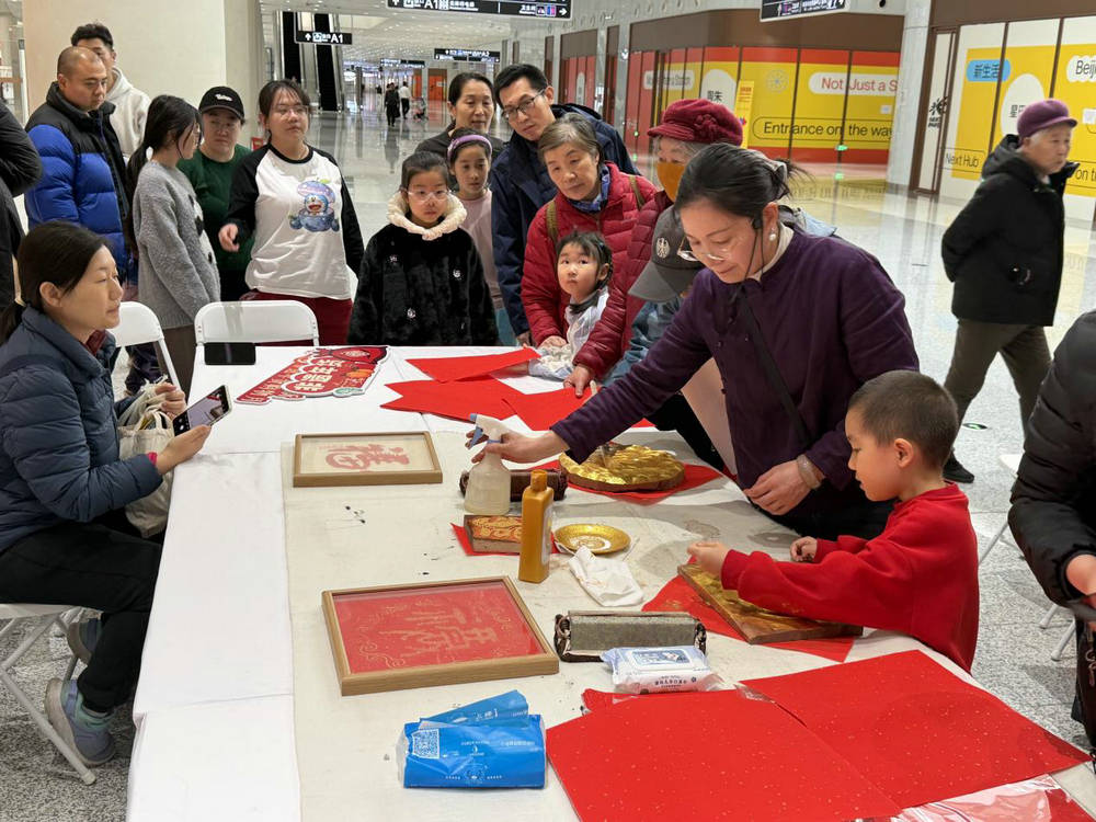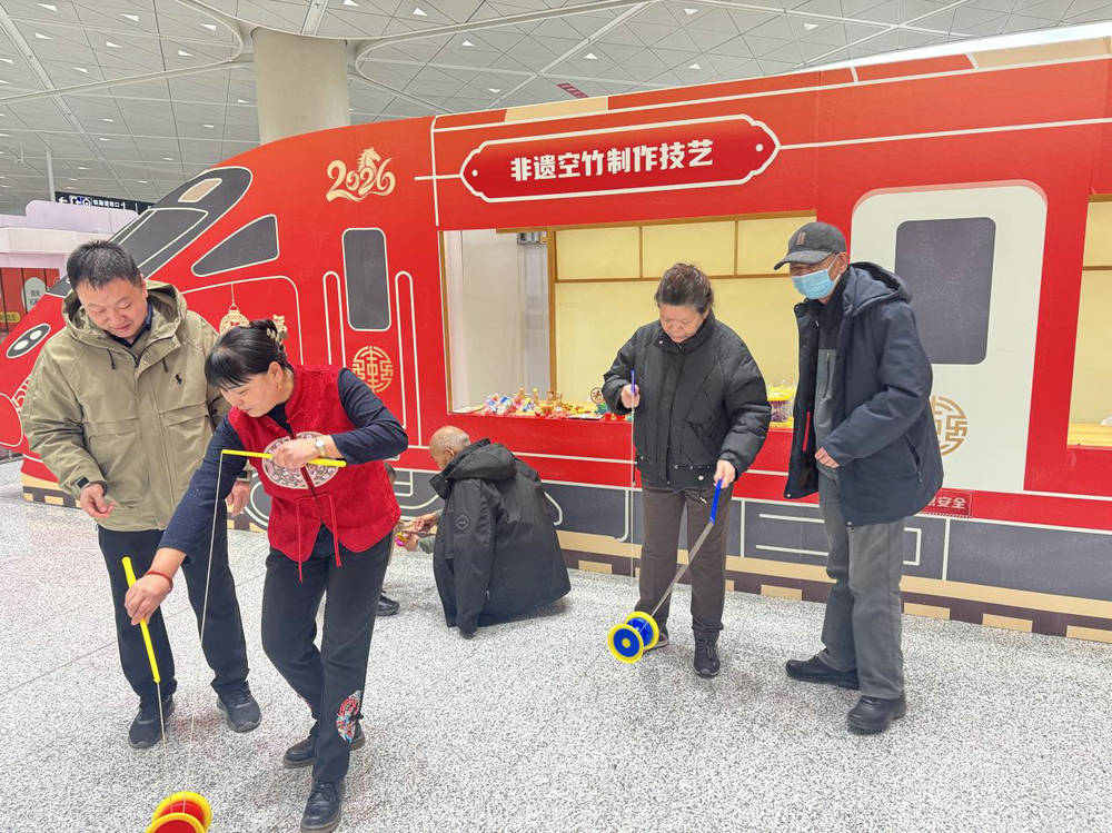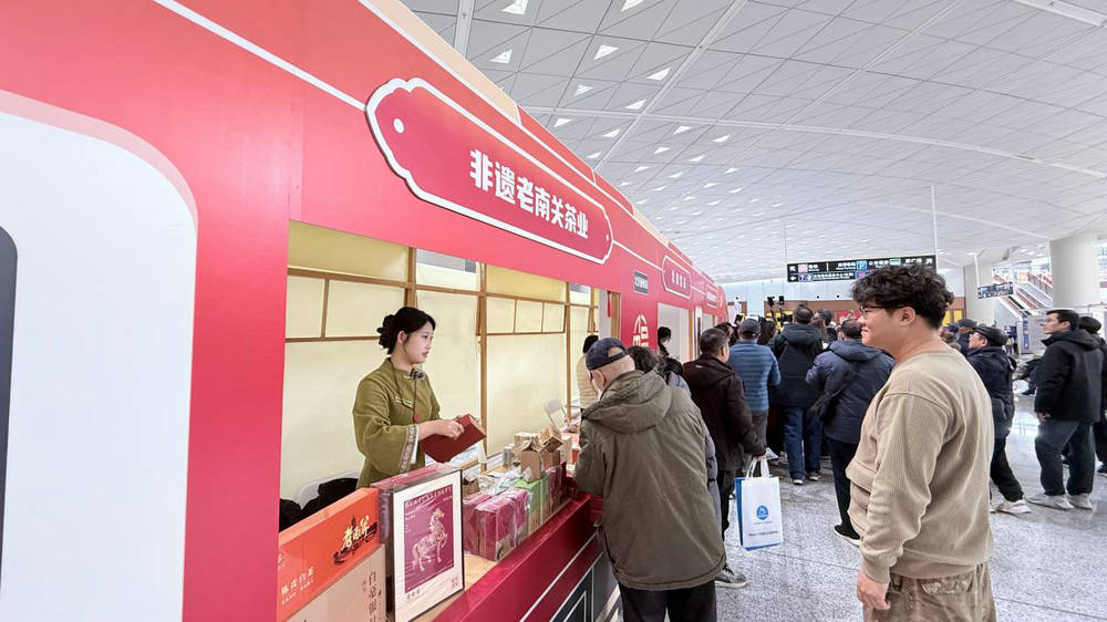 候车厅里那列“好运号”非遗专列轮换开展,空竹、通草花、毛猴轮换登场,于家务炒货、西槐庄萝卜、张家湾草莓香气扑鼻。列车将一直陪伴旅客到正月十五,您哪天路过,都能捎上一份副中心的特色年味。