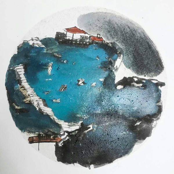 闲写山水·坐观云-韩志冰水墨山水欣赏